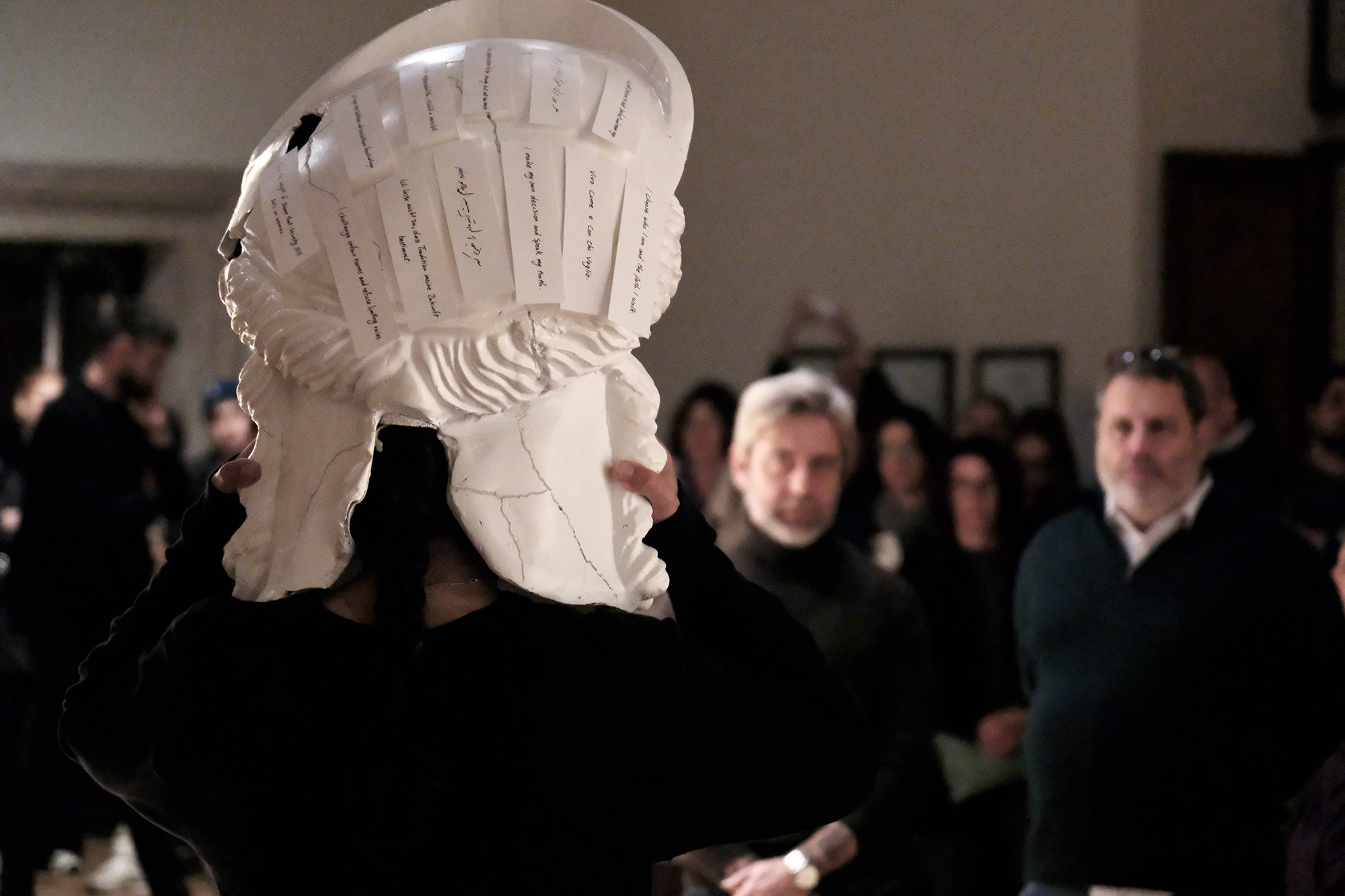 L’artista, interagendo con il pubblico attraverso un busto sovradimensionato e frammentato della Giunone Ludovisi, ha saputo trasformare un’immagine simbolo di una bellezza femminile idealizzata in una manifestazione della donna attiva, politica e viva in dialogo tra la pietra e la presenza, la storia e la voce di oggi. Un momento di profonda riflessione collettiva che rappresenta una tappa del progetto artistico di Farzane Ludovisi nato del 2023 in occasione della mostra Walle! walle* alla Casa di Goethe e alla Klassik Stiftung @klassikstiftung.